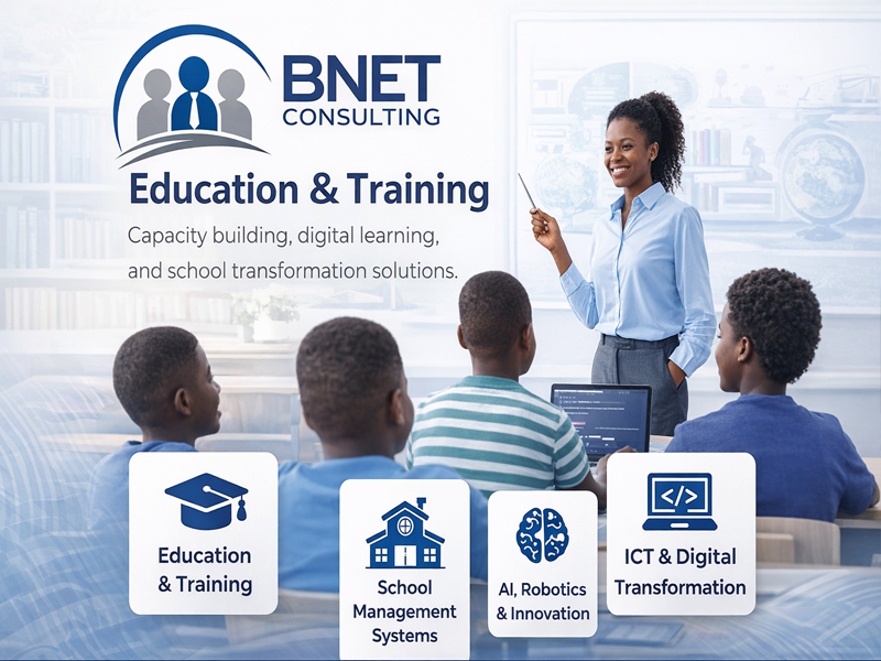 BNET Consulting & Training Services Enterprises is a professional consultancy firm dedicated to empowering individuals, schools, organizations, and stakeholders through custom-made solutions in employment, capacity building, and professional development. With a strong commitment to excellence, we bridge the gap between knowledge and practice, ensuring our clients achieve sustainable growth and success. Our target clients clients include: